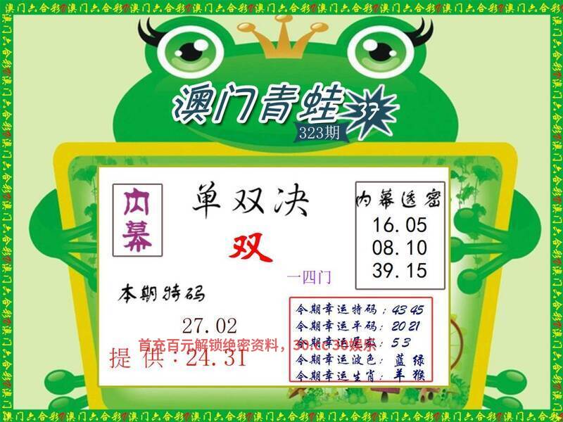 323期:Ω前后两肖┣前肖+鸡羊┫开:鸡09准